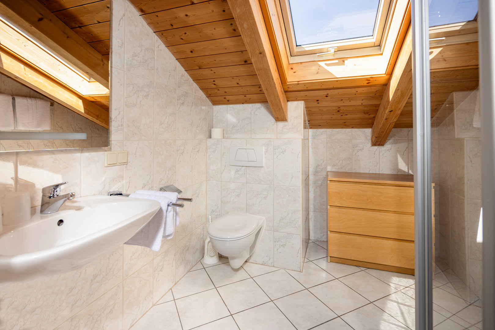 Gemütlich unter dem Dach – mit freigelegten Balken – liegt unser Apartment Jenner. Im großzügigen Wohnraum erwartet Sie eine geschmackvolle Sitzgruppe. Unkompliziert kann diese in ein Doppelbett verwandelt werden. Zudem gibt es ein separates Schlafzimmer und ein neu gestaltetes Bad.